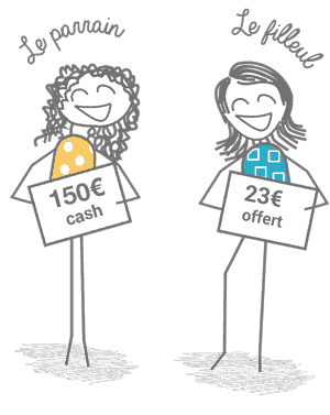 après souscription de mon filleul, je reçois mon chèque de parrainage et mon filleul reçoit également une remise de 23€.